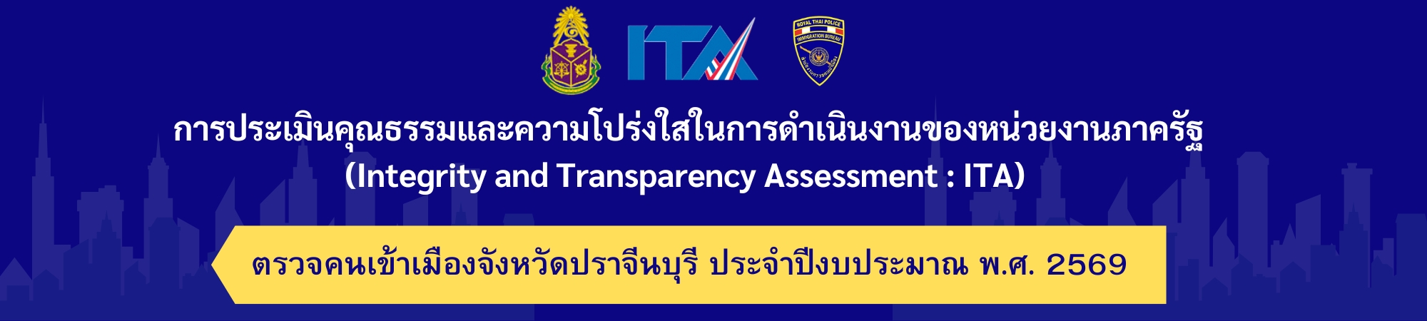สวญ.ตม.จว.ปราจีนบุรี เชิญชวนประชาชนหรือผู้มีส่วนได้ส่วนเสียภายนอก (EIT) ร่วมตอบแบบสอบถามการประเมินคุณธรรมและความโปร่งใสของ ตม.จว.ปราจีนบุรี 17 มีนาคม 2025