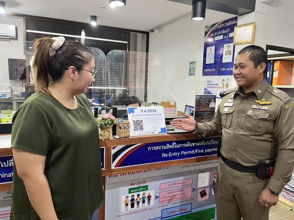วันที่ 1 ก.พ.67 พ.ต.ท.ปวิช อุราสาย สวญ.ตม.จว.ปราจีนบุรี ประชาสัมพันธ์ผู้มาใช้บริการ กรอกแบบวัดการรับรู้ของผู้มีส่วนได้ส่วนเสียภายนอก และประชาสัมพันธ์ช่องทาง ร้องเรียน ณ จุดบริการประชาชนตม.จว.ปราจีนบุรี