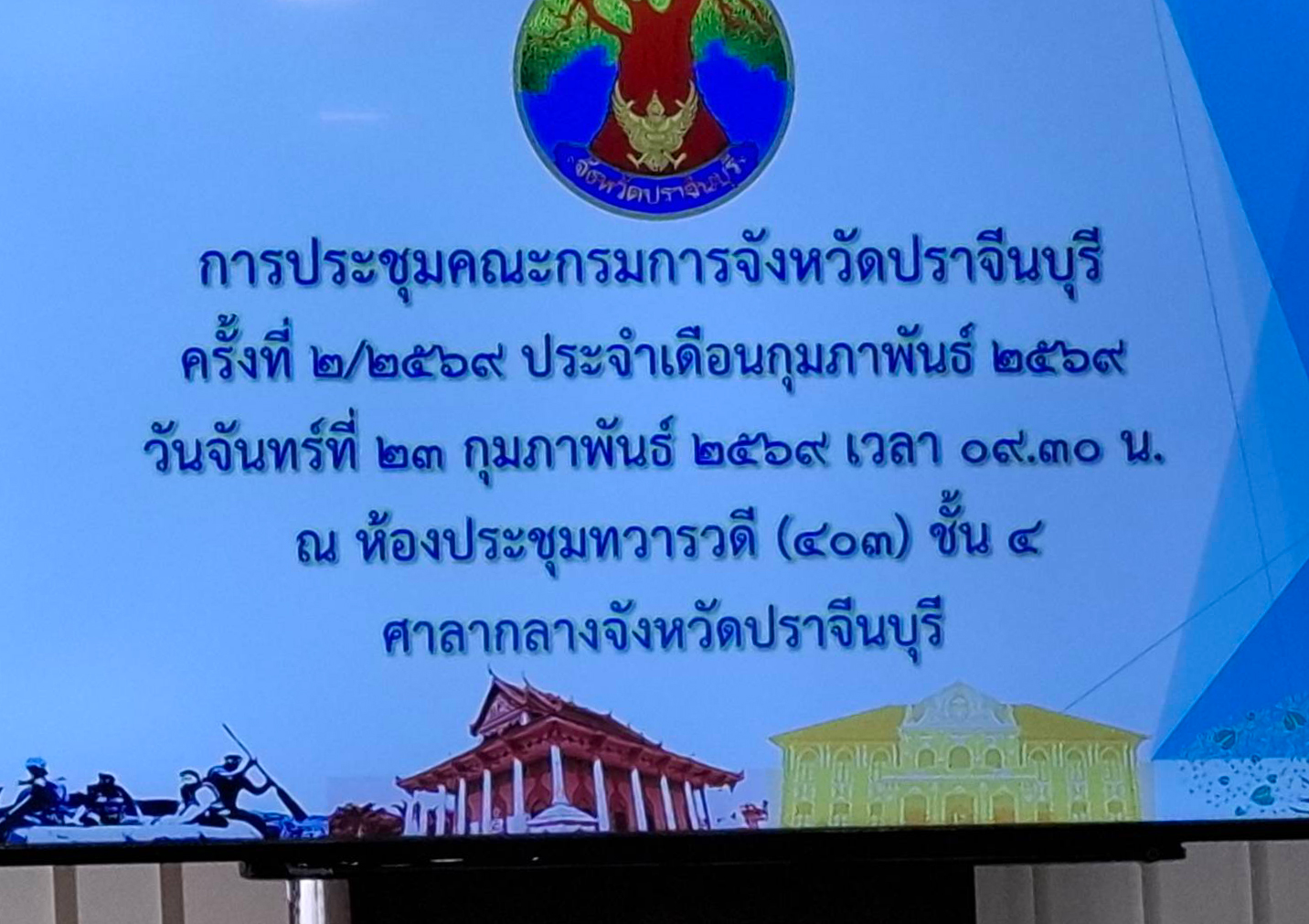 วันจันทร์ที่ 23 กุมภาพันธ์ 2569 เวลา 09.30 น. พ.ต.ท.นที คุ้มล้วนล้อม สวญ.ตม.จว.ปราจีนบุรี บก.ตม.3 มอบหมายให้ ร.ต.อ.หญิง วนิดา แจ่มสว่าง รอง สว.ตม.จว.ปราจีนบุรี บก.ตม.3 เข้าร่วมประชุมคณะกรมการจังหวัดปราจีนบุรี ครั้งที่ 2/2569 ประจำเดือนกุมภาพันธ์ 2569 พร้อมด้วยหัวหน้าส่วนราชการภายในจังหวัดปราจีนบุรี ณ ห้องประชุมทวารวดี 403 ศาลากลางจังหวัดปราจีนบุรี ตำบลไม้เค็ด อำเภอเมืองปราจีนบุรี จังหวัดปราจีนบุรี โดยมีนายวีระพันธ์ ดีอ่อน ผู้ว่าราชการจังหวัดปราจีนบุรีเป็นประธานการประชุมในครั้งนี้