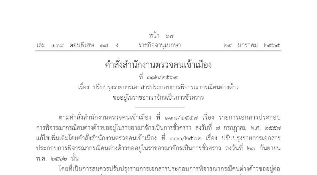 18 มกราคม 202417 มีนาคม 2025ประกาศ คำสั่ง คำสั่งสำนักงานตำรวจแห่งชาติ เรื่อง ปรับปรุงหลักเกณฑ์ และเอกสาร กรณีคนต่างด้าวขออนุญาตอยู่ในราชอาณาจักรเป็นการชั่วคราว