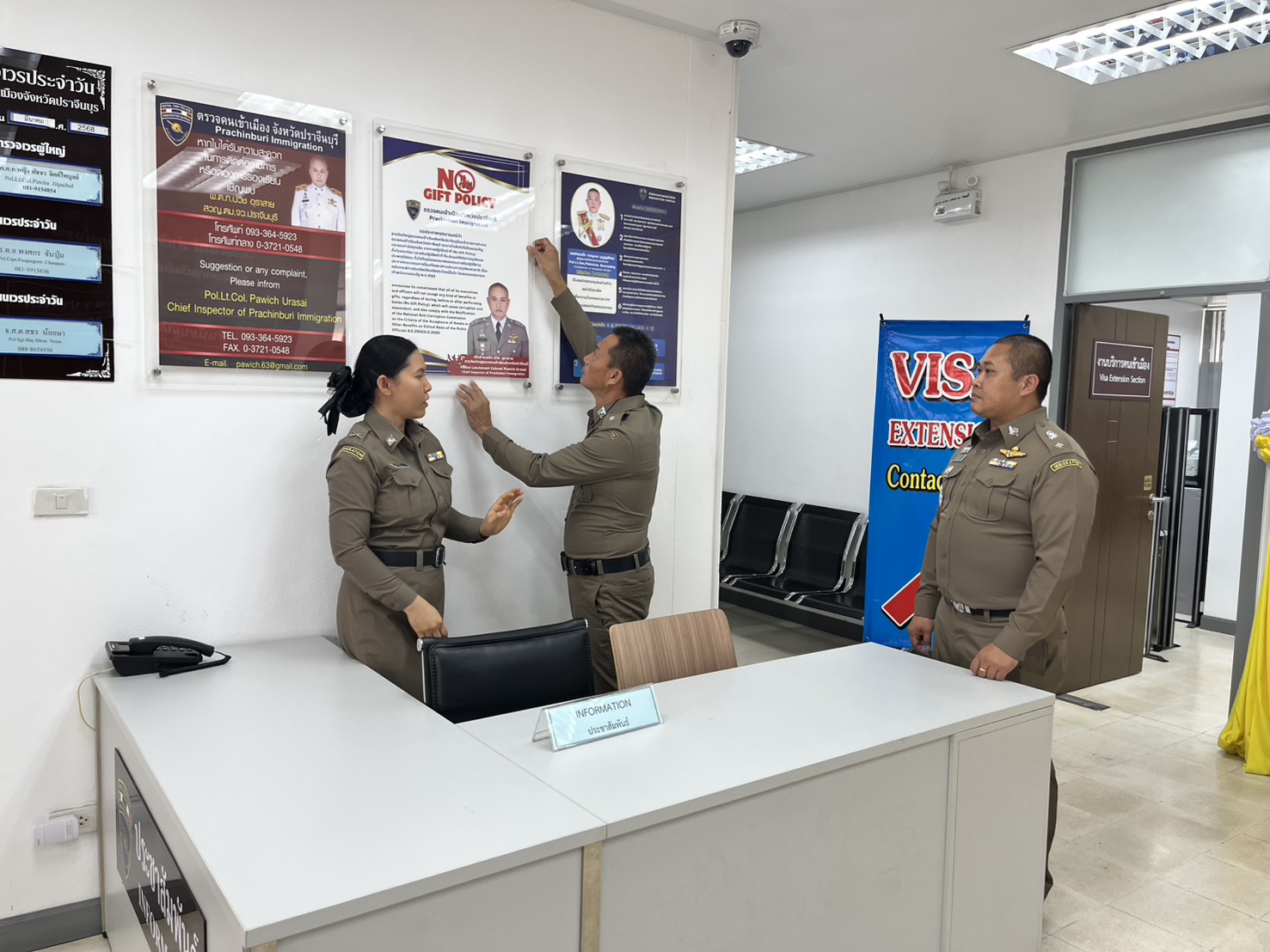7 มกราคม 202521 มีนาคม 2025การมีส่วนร่วมของหัวหน้าตรวจคนเข้าเมืองจังหวัด 2568 วันที่ 7 มกราคม 2568 เวลา 16.00 น. พ.ต.ท.ปวิช อุราสาย นำข้าราชการตำรวจในสังกัด ตม.จว.ปราจีนบุรี ติดป้ายประกาศนโยบายการต่อต้านการรับสินบน ของ ตม.จว.ปราจีนบุรี ประจำปีงบประมาณ พ.ศ.2568