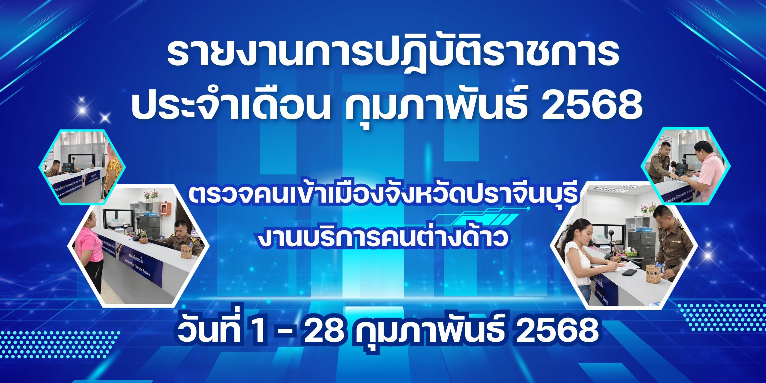1 มีนาคม 20252 เมษายน 2025งานบริการคนต่างด้าว, งานบริการคนต่างด้าว ประจำเดือน กุมภาพันธ์ 2568 รายงานการปฏิบัติราชการประจำเดือน กุมภาพันธ์ 2568 ประจำปีงบประมาณ พ.ศ.2568 ตรวจคนเข้าเมืองจังหวัดปราจีนบุรี งานบริการคนต่างด้าว วันที่ 1-28 กุมภาพันธ์ 2568