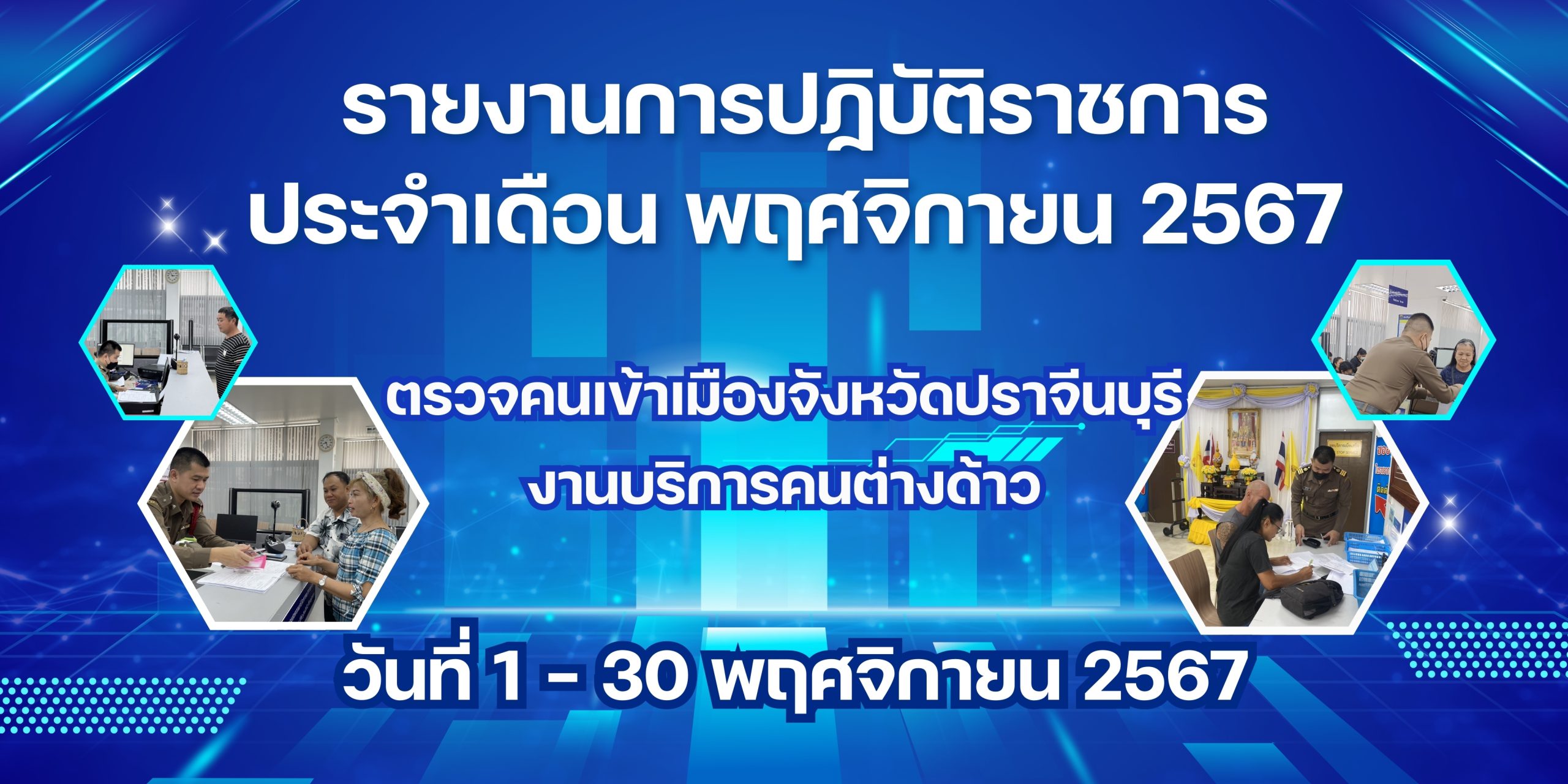 8 พฤศจิกายน 202431 มีนาคม 2025งานบริการคนต่างด้าว, งานบริการคนต่างด้าว ประจำเดือน พฤศจิกายน 2567 งานบริการคนเข้าเมืองช่วงวันที่ 1 พ.ย.67 ถึง 8 พ.ย.67 เจ้าหน้าที่งานบริการคนเข้าเมือง ตม.จว.ปราจีนบุรี