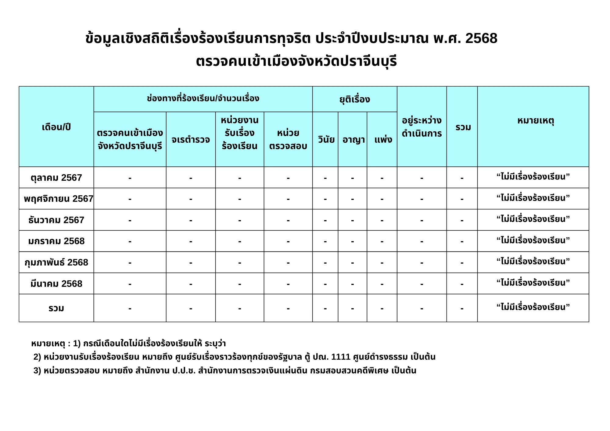 ข้อมูลเชิงสถิติเรื่องร้องเรียนการทุจริต ประจำปีงบประมาณ พ.ศ. 2568