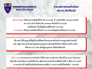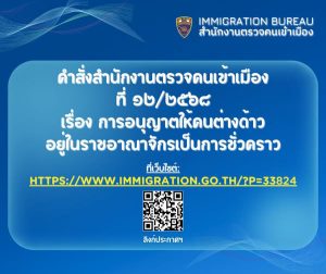 คำสั่งสำนักงานตรวจคนเข้าเมือง ที่ 12/2568เรื่อง การอนุญาตให้คนต่างด้าวอยู่ในราชอาณาจักรเป็นการชั่วคราวดู