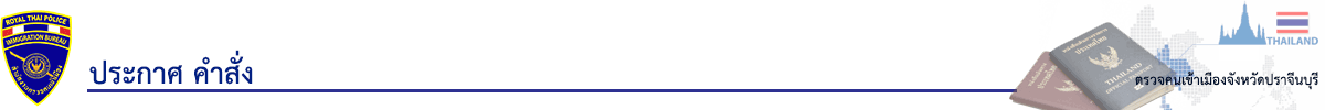 ประกาศ คำสั่ง คำสั่งสำนักงานตำรวจแห่งชาติ เรื่อง ปรับปรุงหลักเกณฑ์ และเอกสาร กรณีคนต่างด้าวขออนุญาตอยู่ในราชอาณาจักรเป็นการชั่วคราว Read More » 18 มกราคม 2024